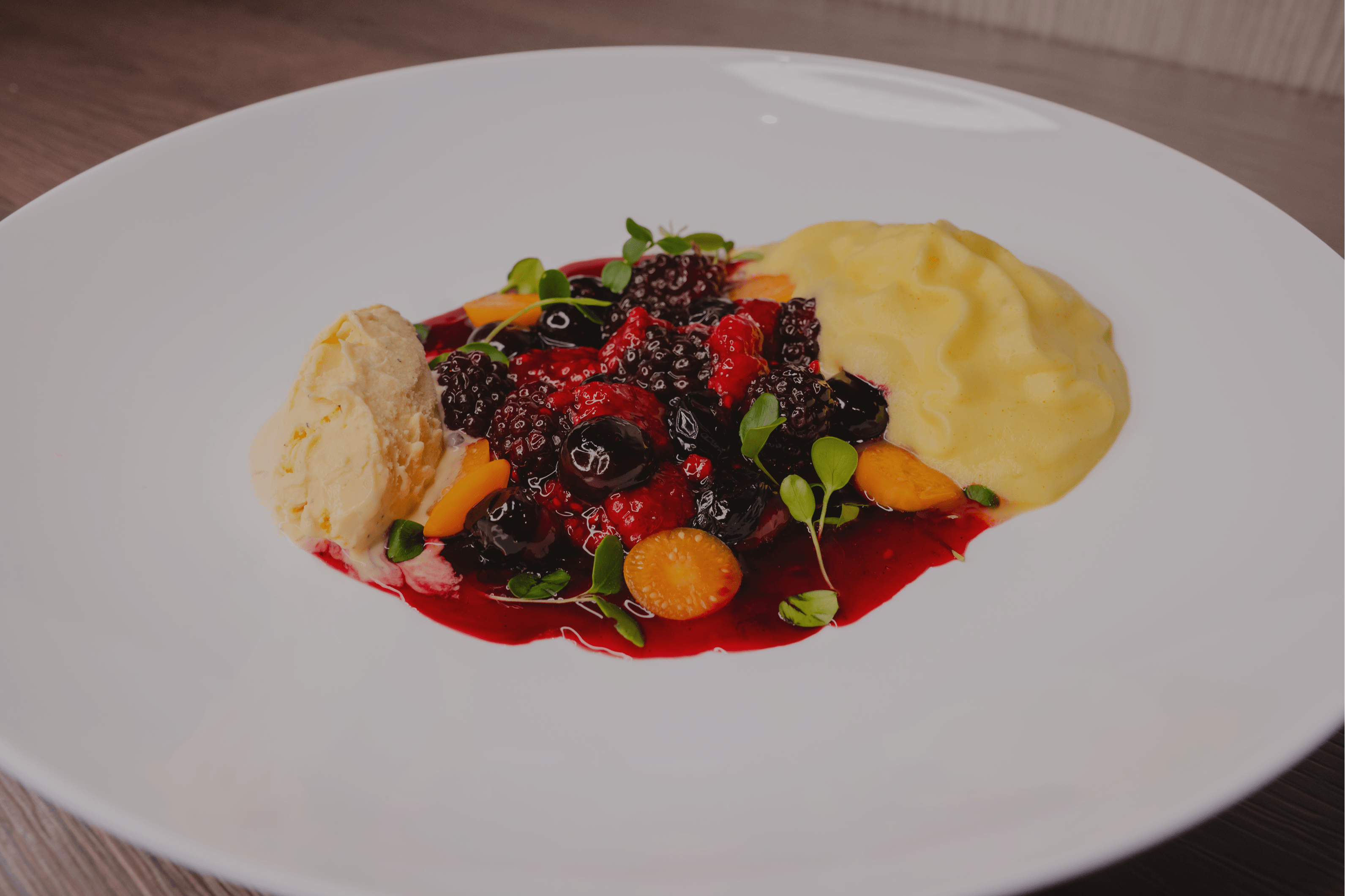 Am Abend wird es im Porthhof ruhiger und feiner. Unsere Küche arbeitet klar, handwerklich und saisonal – deshalb wechseln wir die Abendkarte monatlich und passen sie an das an, was gerade frisch und stimmig ist. So bleibt jeder Besuch ein kleines bisschen anders.